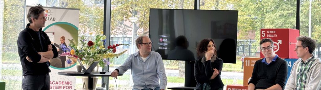 The morning session addressed technological perspectives. After a welcome, InDeep project leader Jelle Zuidema outlined the current state of AI, highlighting the black-box problem. Mehrnoosh Sadrzadeh (UCL) and Martha Lewis (UvA) followed with quantum-inspired approaches to modelling language and vision in AI. Ronald de Wolf (CWI & UvA, QuSoft) concluded with an overview of quantum computing, linking it to Zuidema’s AI analysis. A panel discussion with Christian Schaffner (UvA, QuSoft) and chaired by Joris van Hoboken (UvA) explored common challenges, research stages, and opportunities across the two domains.